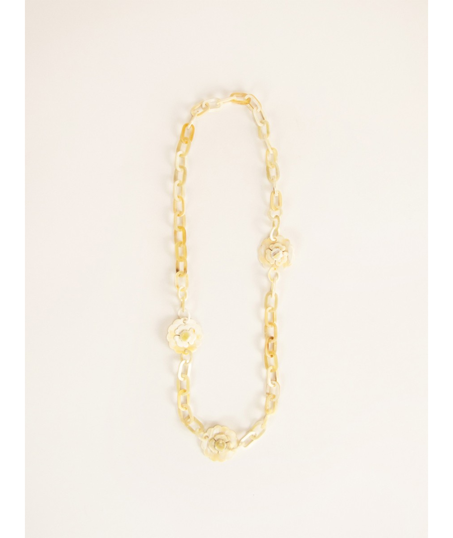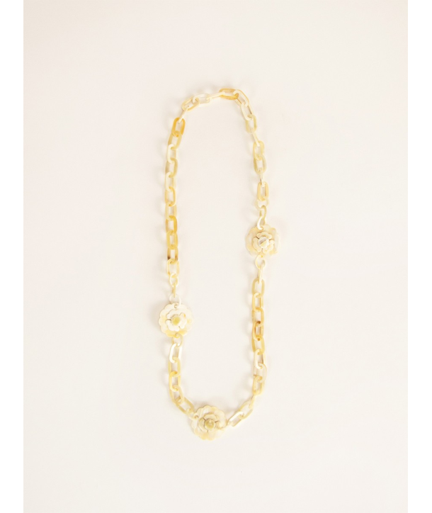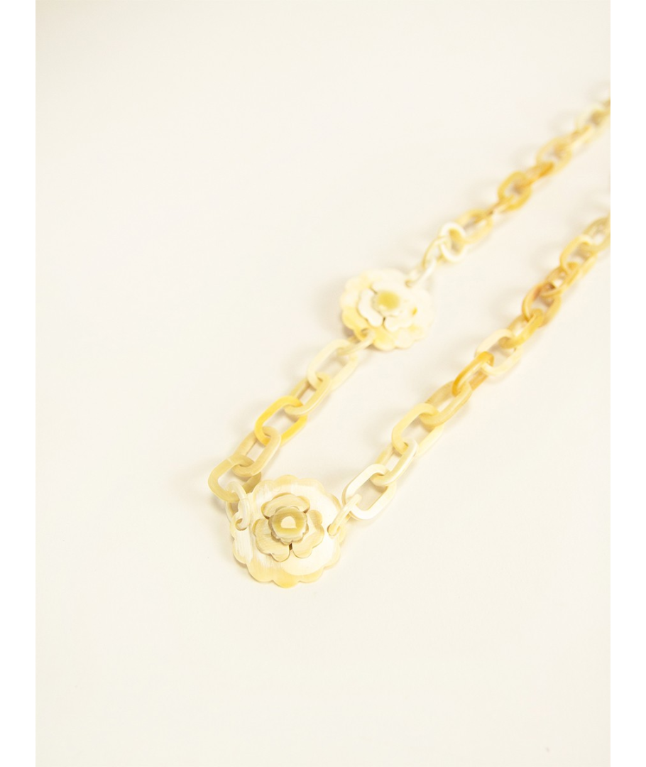 Sautoir anneaux fins en corne blonde avec 3 fleurs