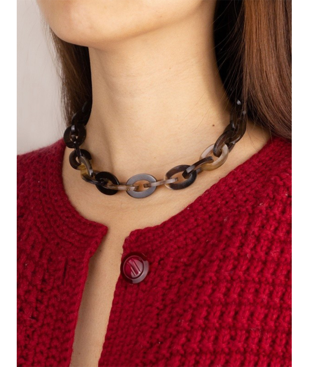 Collier ras de cou anneaux ovales plats en sabot