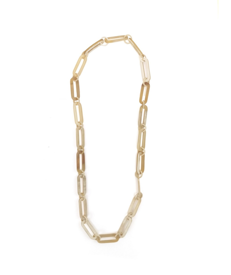 Sautoir anneaux ovales et ronds en corne blonde