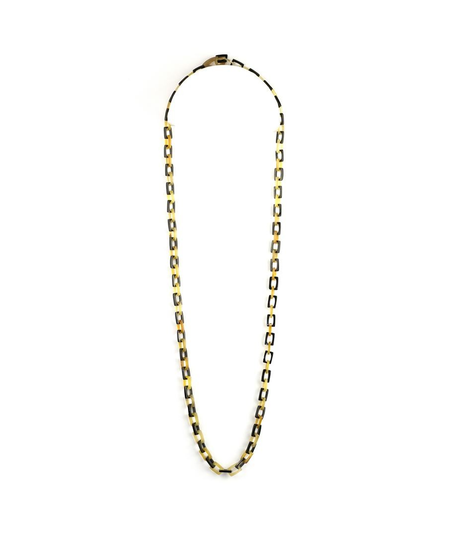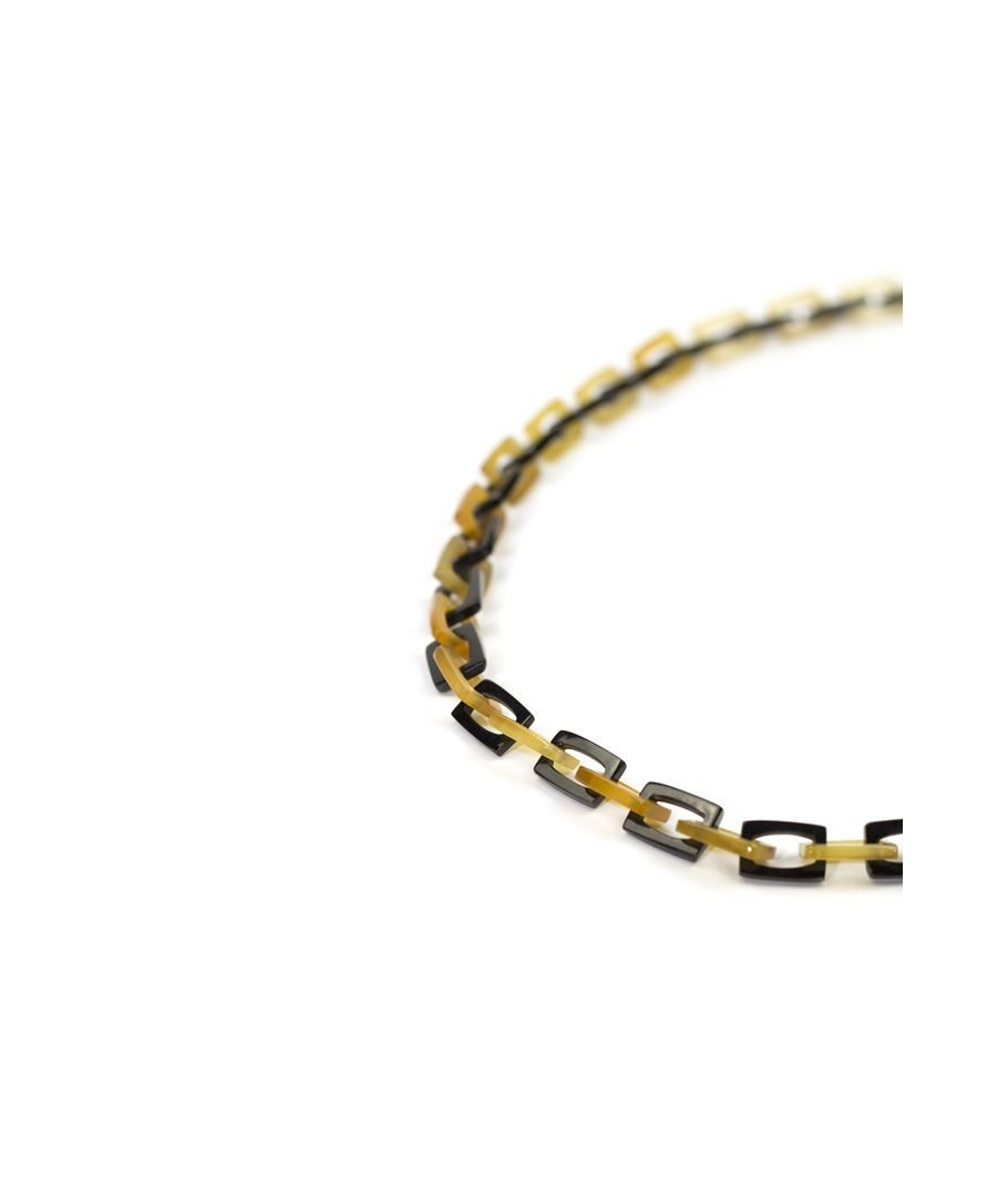 Sautoir maille rectangulaire fine en corne blonde et noire