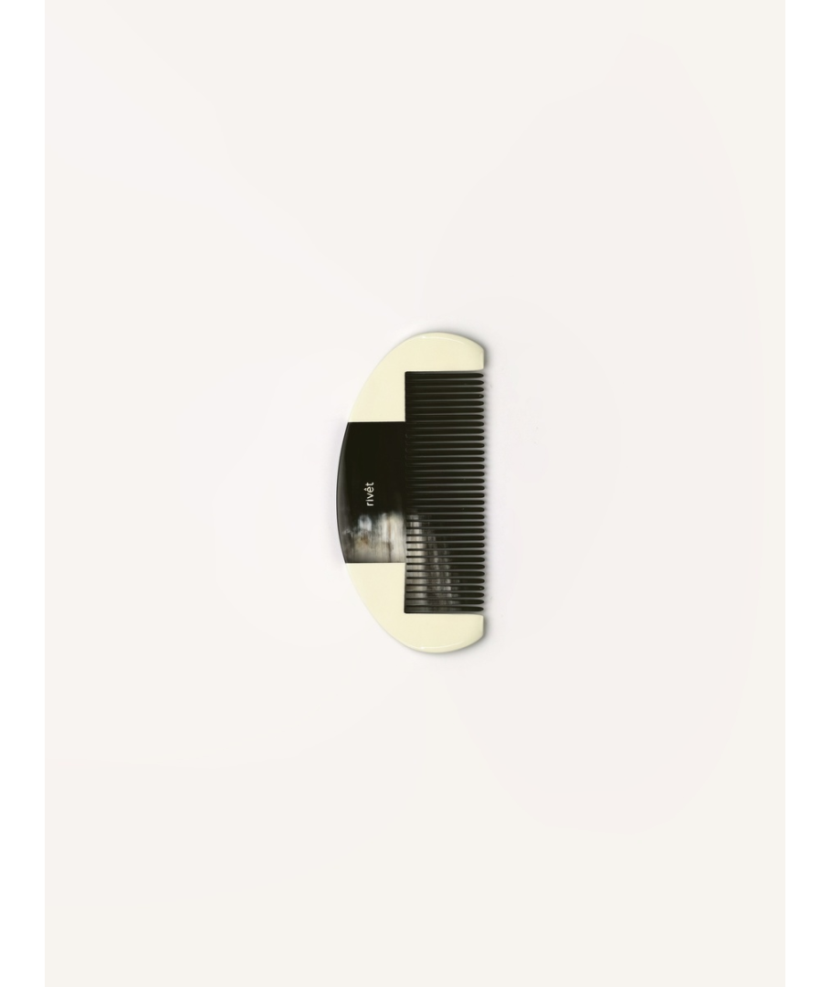 Smoothing comb in marbled black horn, exterior ivory lacquer