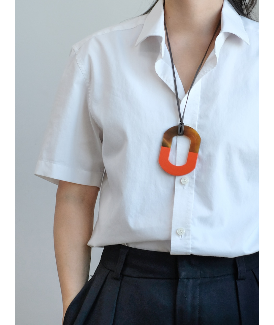 Pendentif anneau oval carré en sabot et laqué moitié orange