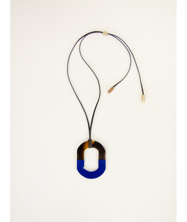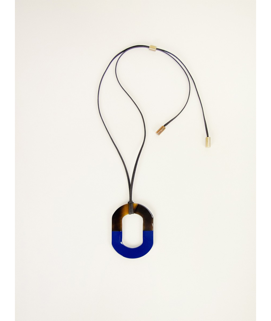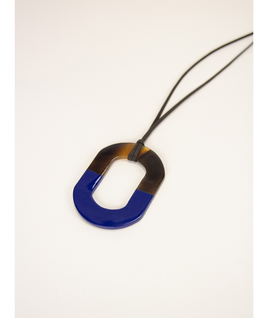 Pendentif anneau oval carré en sabot et laqué moitié bleu indigo