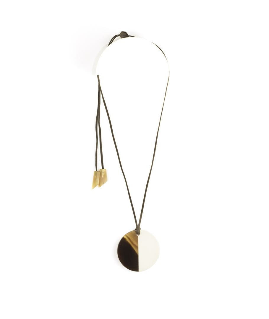Pendentif disque laqué ivoire