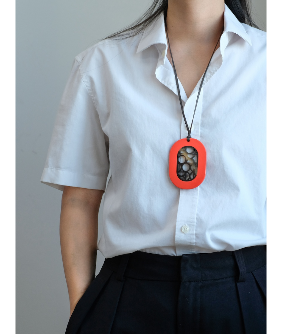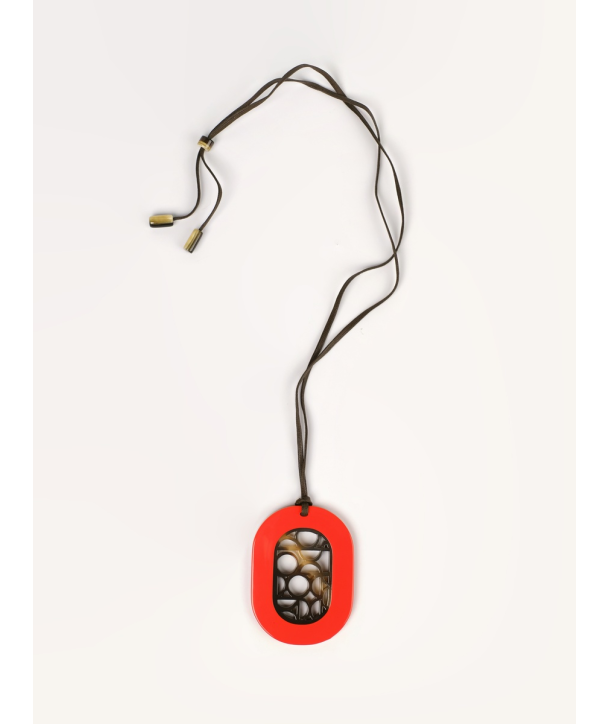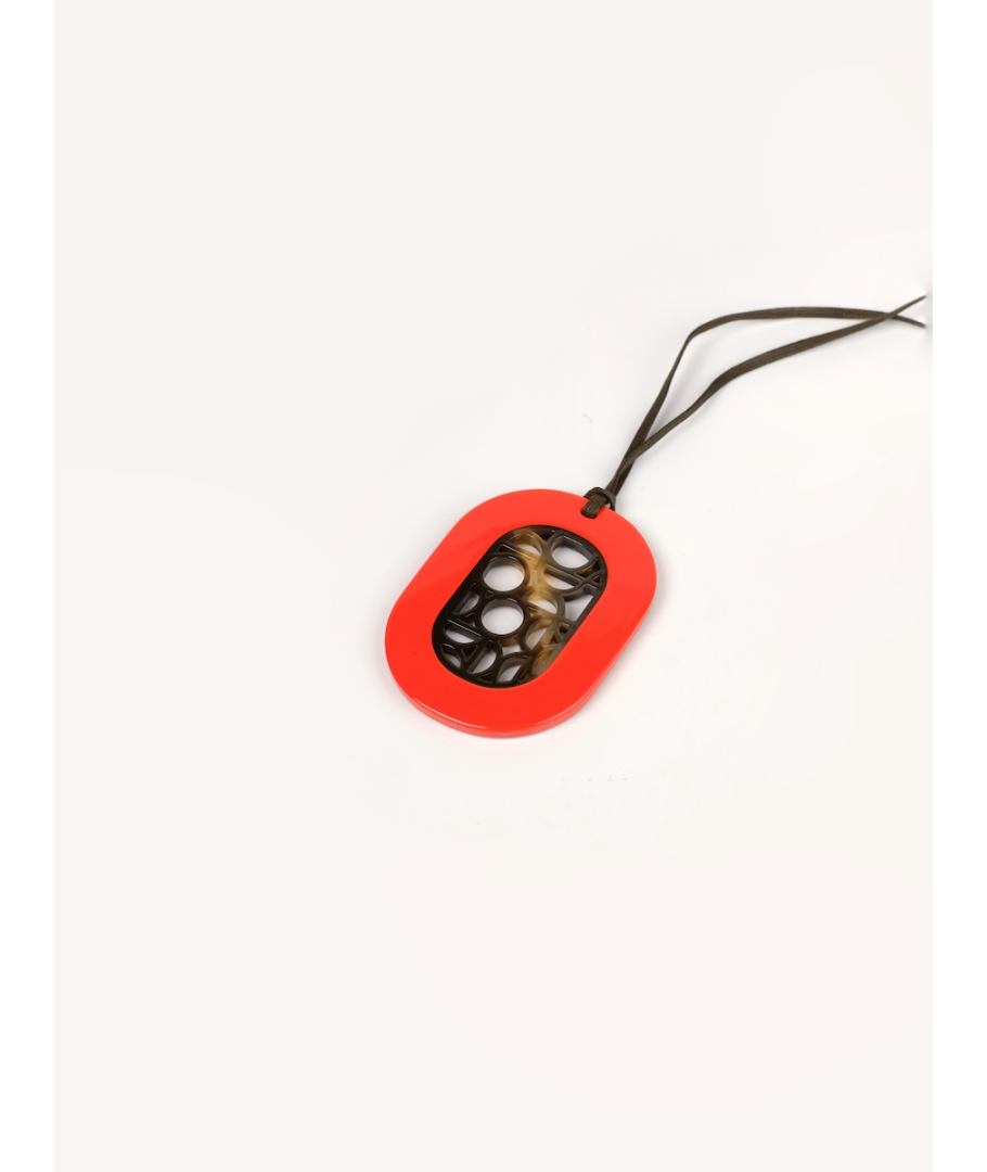 Pendentif oval Bauhaus en sabot de buffle et laque orange