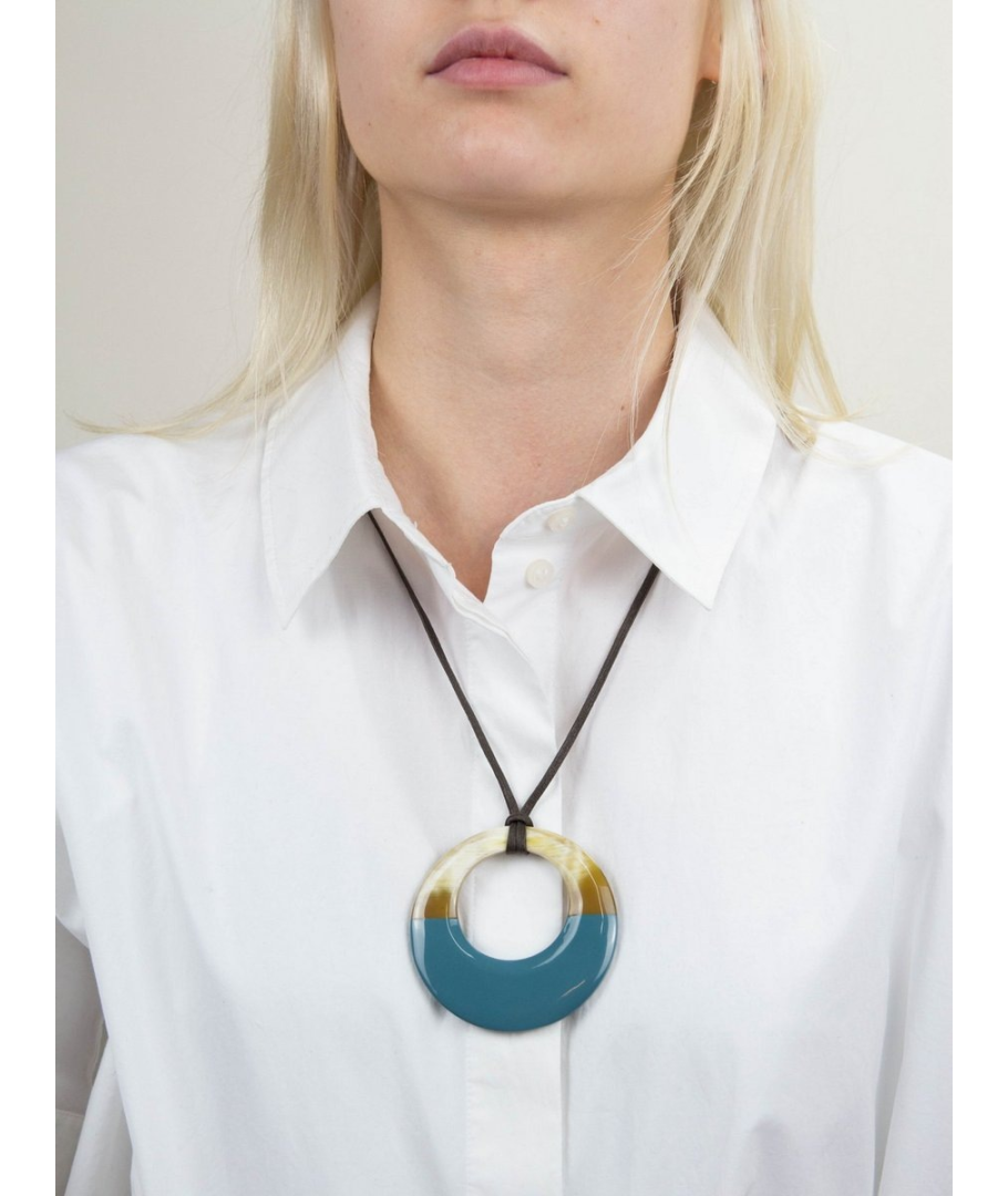 Pendentif petit anneau irrégulier laqué gris-bleu