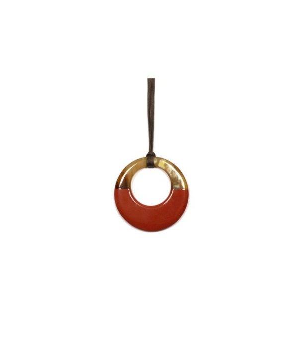 Pendentif petit anneau épais et irrégulier corne blonde et laque brique