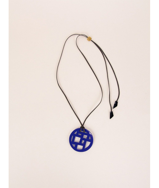 Checkered indigo blue lacquered pendant