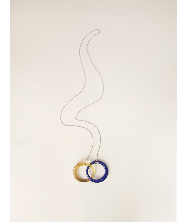 Pendentif chaîne 2 anneaux entrelacés bleu indigo