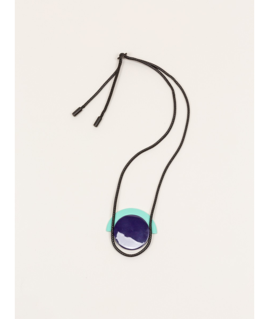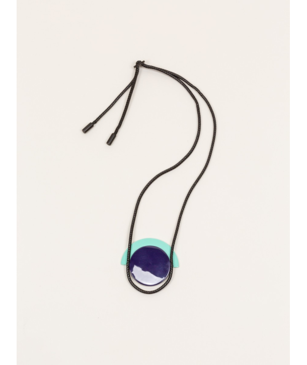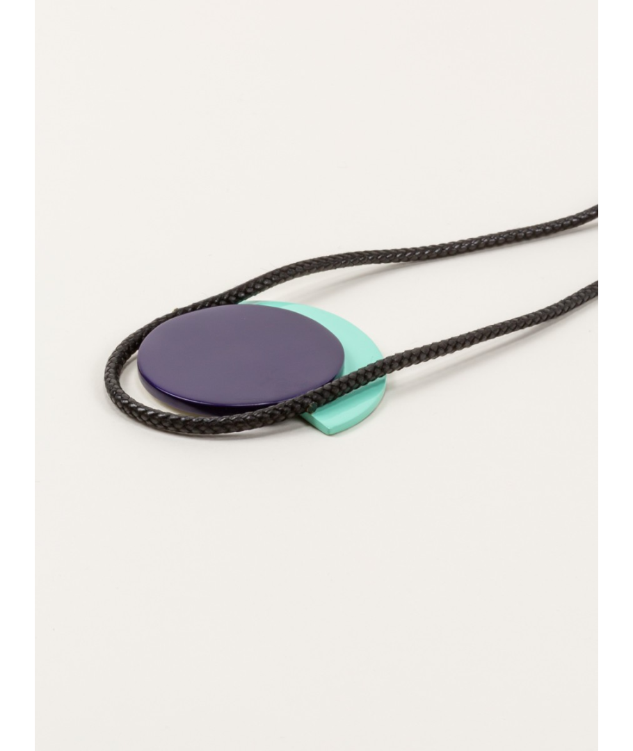 Pendentif Dôme en corne blonde avec laque menthe et violet