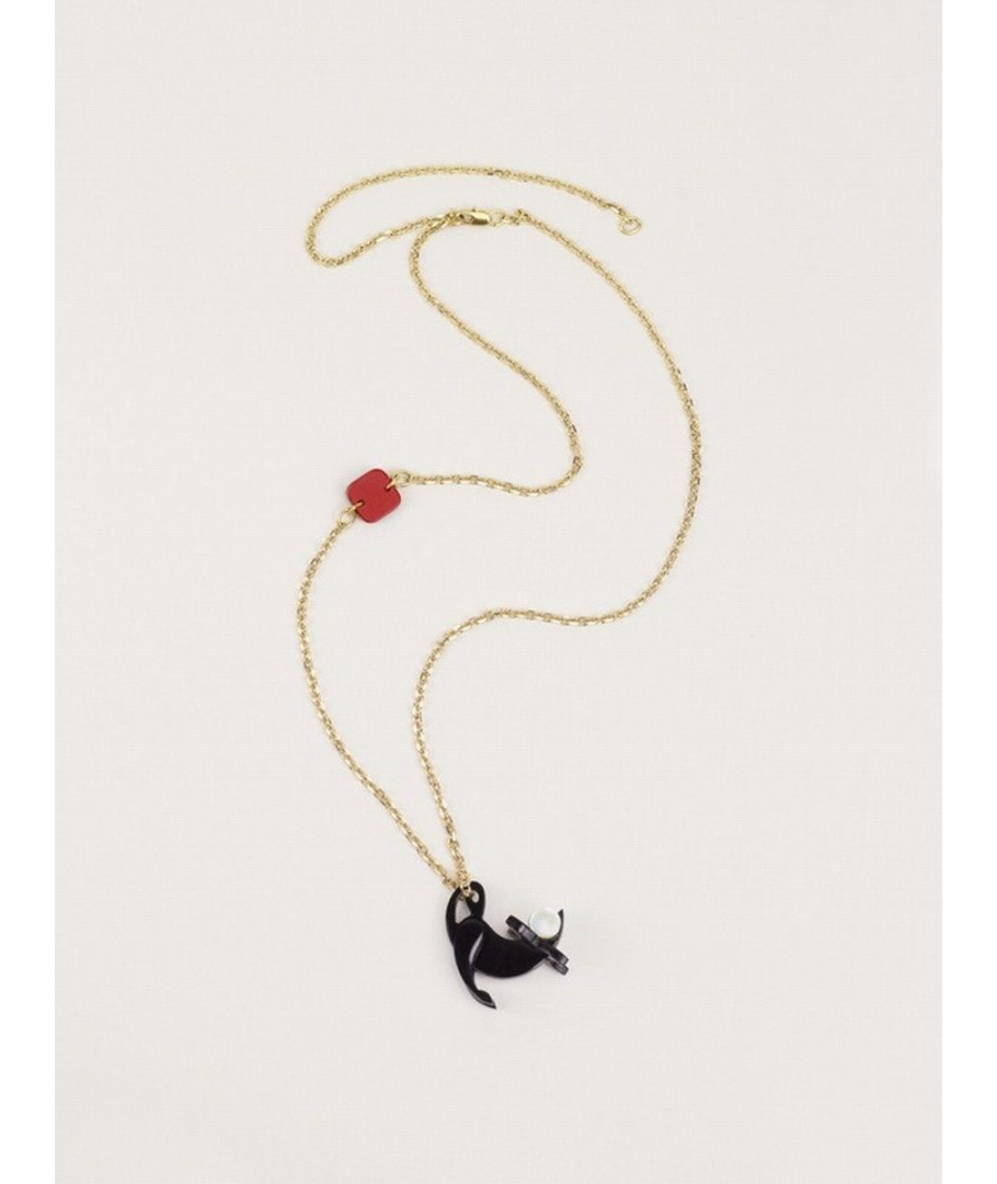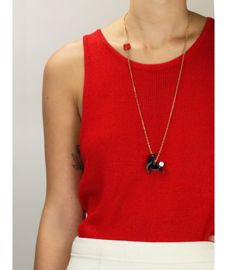 Chaîne en laiton et élément en corne et laque Rouge Feu