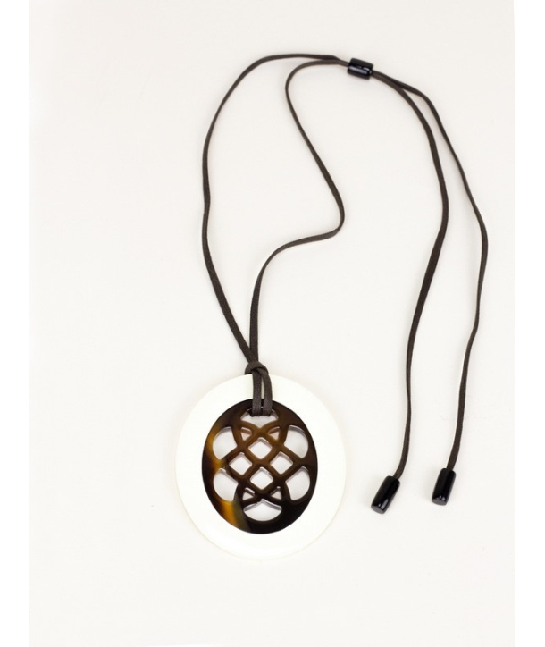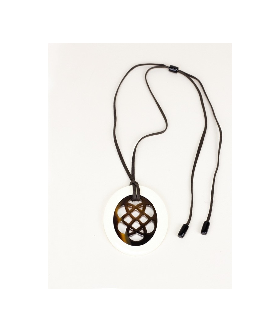 Pendentif oval en sabot avec motif longévité ajouré et laque ivoire