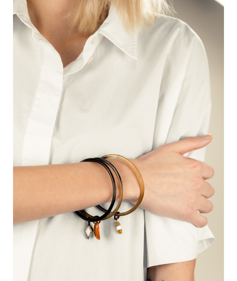 We offer 2 sizes according to the inside diameter of our bracelets and cuffs. Please pay attention to the width of the bracelet or cuffs when you choose the size. You may need a bigger size to be able to put on a wide bracelet or cuffs, than you would with a thin one.
