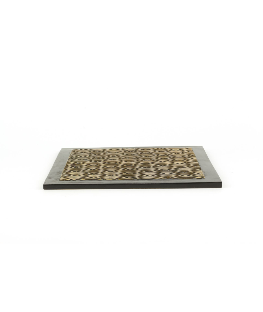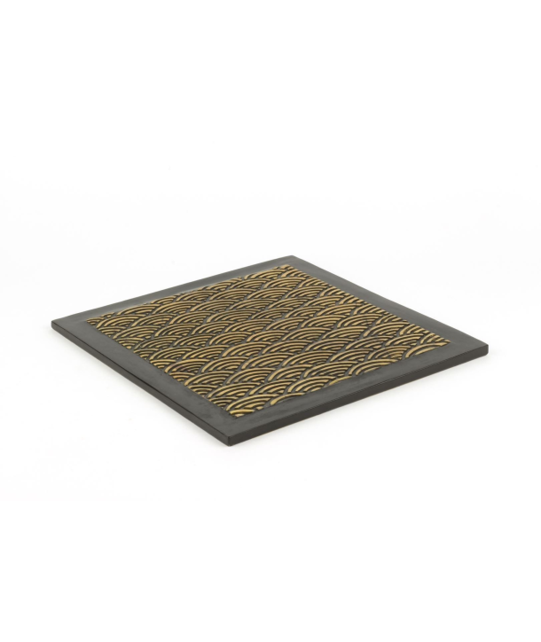 Dessous de plat carré motif vagues en pierre fond noir