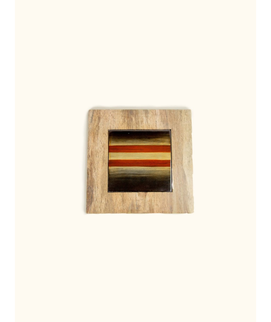 Set dessous de plat et dessous de bouteille carré en pierre naturelle et laque rayée