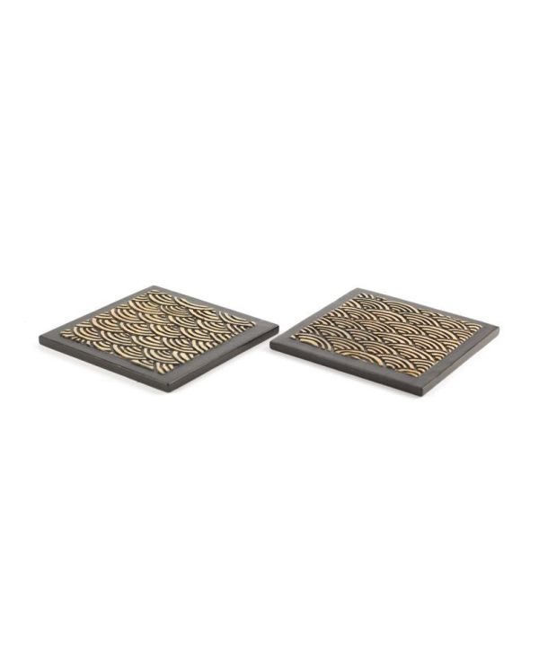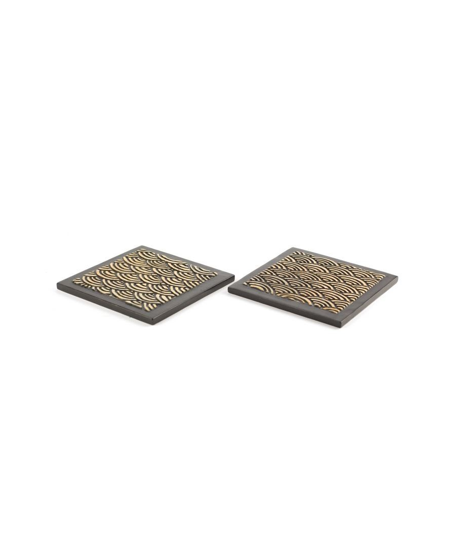 Set de 2 dessous de bouteille carré motif vagues en pierre fond noir